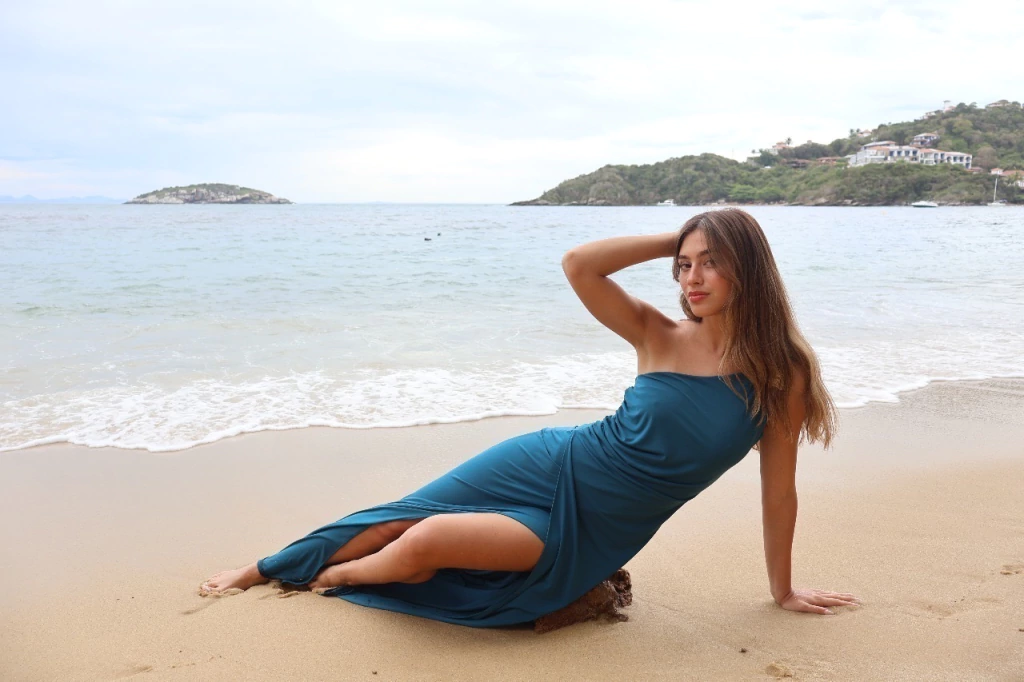 VEST5630 - Vestido largo de lentejuela 1 hombro con tajo